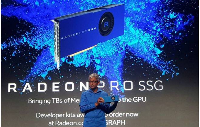 A AMD apresentou uma nova placa gráfica que traz um conceito um pouco diferente. A Radeon PRO SSG aposta no conceito de não trazer memória própria, mas abrir dois slots PCIe 3.0 M.2 para que o usuário instale sua própria memória NAND, que pode chegar a 1 TB.
